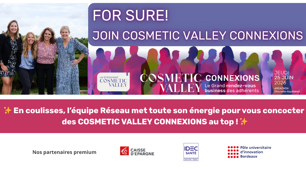 📍 Rendez‑vous le 25 juin 2026 au Palais des Congrès d’Arcachon pour une nouvelle édition de COSMETIC VALLEY Connexions, le GRAND rendez‑vous business des adhérents.
